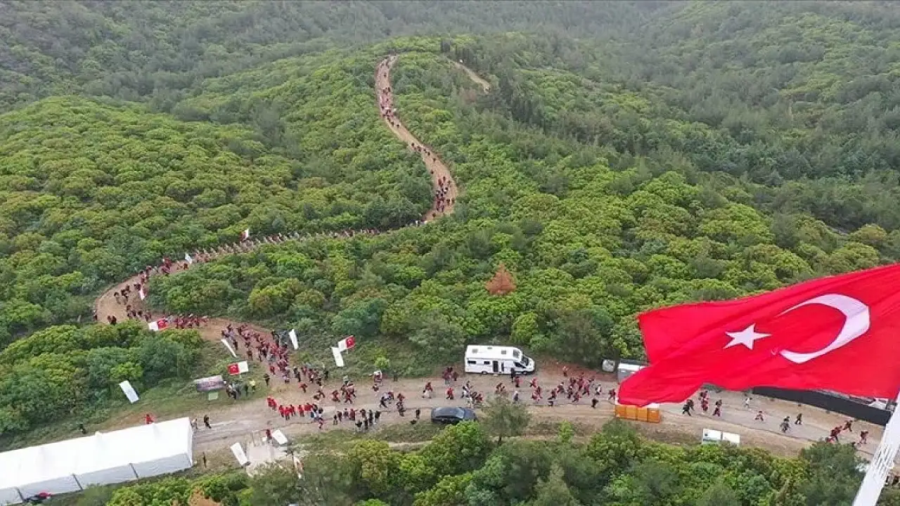 Mehter eşliğinde Türk bayraklarıyla yola çıkan izciler ardından Conkbayırı'na ulaşıp yürüyüşü tamamlayacak.