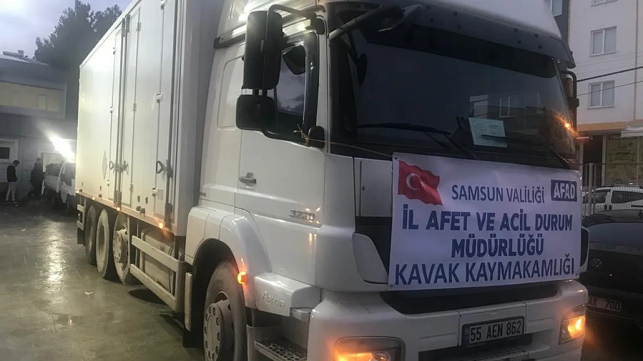 Kavak Kaymakamı Faruk Atar, merkez üssü Kahramanmaraş'ın Pazarcık ve Elbistan ilçeleri olan 7,7 ve 7,6 büyüklüğündeki depremlerin ardından bölgeye 15 tır yardım ulaştırıldığını söyledi.
