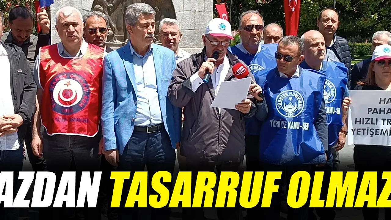Türkiye Kamu-Sen Samsun Şubesince 'İsraftan tasarruf edilir. Alın terinden tasarruf edilmez' sözlerine yer verilerek, yeni açıklanan Kamuda tasarruf tedbirlerine tepki gösterdiler.