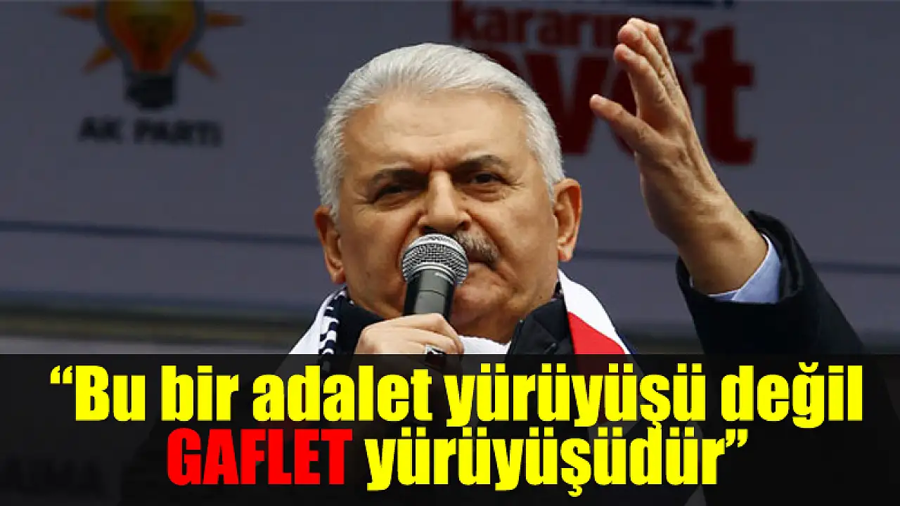 Başbakan Binali Yıldırım, CHP lideri Kılıçdaroğlu'nun 'adalet yürüyüşüne' eleştiride bulunarak, 'Bu bir adalet yürüyüşü değil gaflet yürüyüşüdür. Yol yürümeye devam edersen ömrün biter yollar bitmez' dedi. FETÖ davalarına da değinen Yıldırım, 'Tiyatro yap