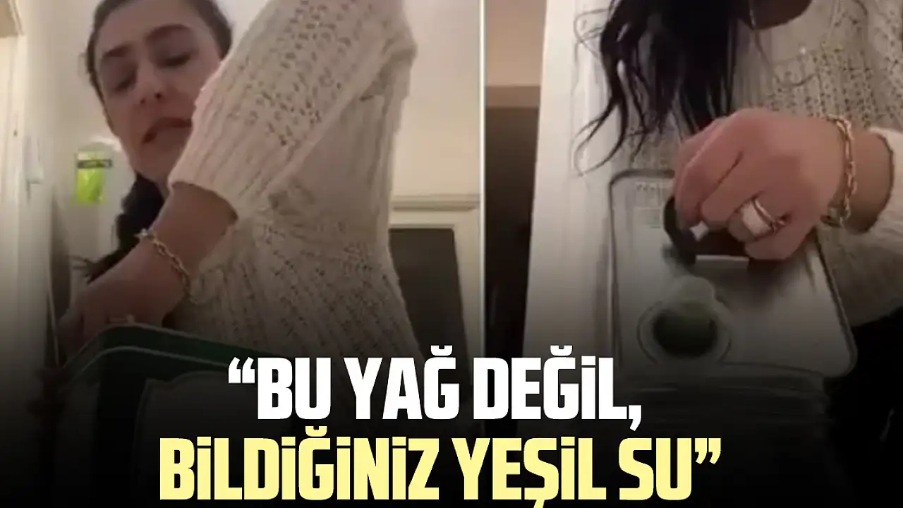Son dönemlerde gıda ürünlerinde yapılan hileler tek tek ifşa edilirken bir kadın, video çekerek aldığı zeytinyağının hem rengine hem de kokusuna tepki gösterip 'Allah sizi kahretsin.' dedi.