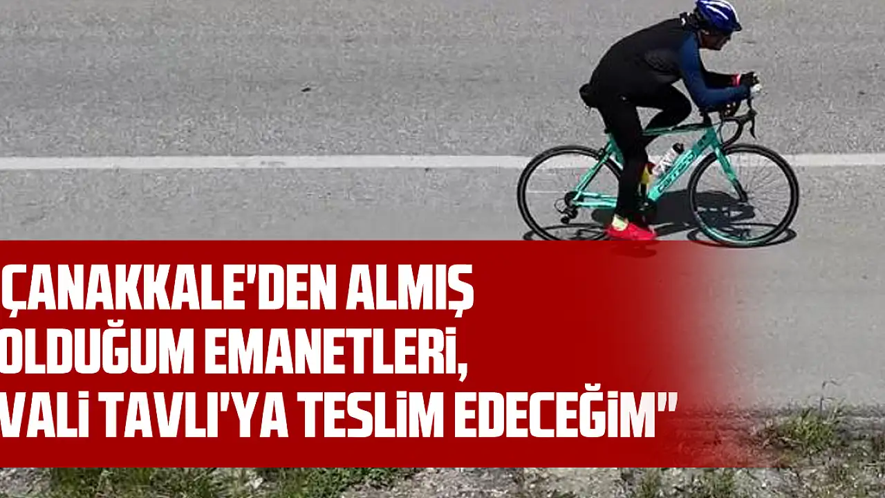 Pedal çevirerek taşıdığı emanetleri Samsun'a ulaştıracağını anlatan Tecimen, "Şehitler diyarı Çanakkale'mizden, 57. Alay Şehitliğinden şehit toprağını aldım. Çanakkale Valimiz Sayın Ömer Toraman'dan ise şanlı Türk bayrağımızı teslim alarak yola çıktım. Ankara'da Atamızın huzuruna çıkarak saygı ve şükranlarımı sundum. İçişleri Bakanlığında Bakan Yardımcımız Sayın Bülent Turan'ı ziyaret ettim. Bugün Ankara'dan çıkarak Kırıkkale etabındayım" diye konuştu.
