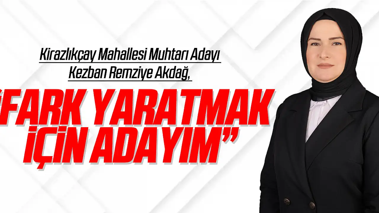 Kirazlıkçay Mahallesi Muhtarı Adayı Kezban Remziye Akdağ, 'Herkesin sesini duymak ve herkesin ihtiyaçlarına cevap vermek için buradayım.' diyerek 31 Mart'ta sandık başına gidecek olan seçmenlere seslendi.