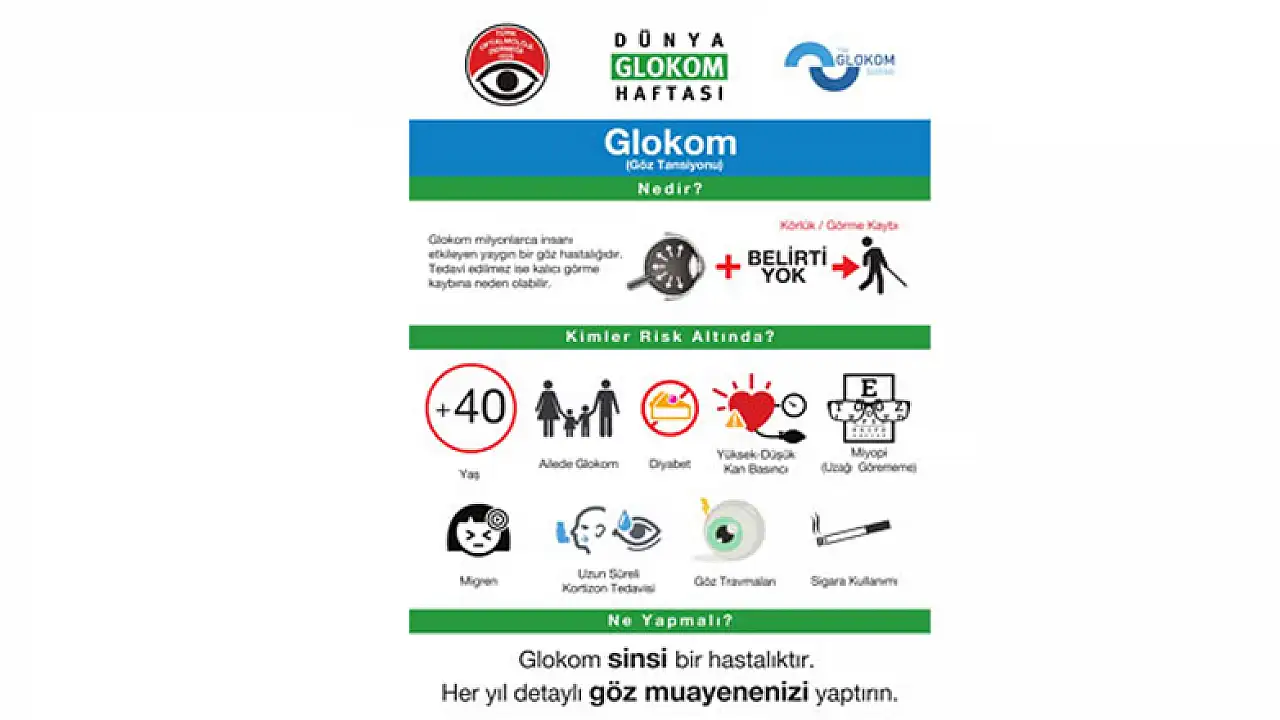 Dünya’da önlenebilir körlük nedenleri arasında ikinci sırada gösterilen glokoma yönelik farkındalığı arttırmak amacı ile her yıl düzenlenen ‘Dünya Glokom Haftası’ ile ilgili olarak yapılan açıklamada, glokoma karşı farkındalık uyandırılmasının ana amaçlardan biri olduğunu, ancak vatandaşların tümüne ulaşılmasının ve onları muayene etmenin mümkün olamadığını belirtildi. Glokom birimi tarafından yapılan açıklamada, “Glokom’a ya da halk arasında bilinen adıyla göz tansiyonuna 'gözün sinsi hırsızı' da denilebilir. En önemli nedeni göz küresi içinde artan göz içi sıvısı basıncı ile görme sinirinin zedelemesidir Hastalığın başlangıcında ciddi bir belirti yoktur. İlerlemiş hastalıkta önce çevreyi görme kabiliyetinde azalma oluşur, en son aşamada uzak ve yakın görme tamamen veya kısmen kaybedilebilir. Bütün bu kayıplar tedaviyle ne yazık ki tekrar geri kazanılmaz. Tedavinin amacı kötüye gidişin durdurulmasından ibarettir" denildi.