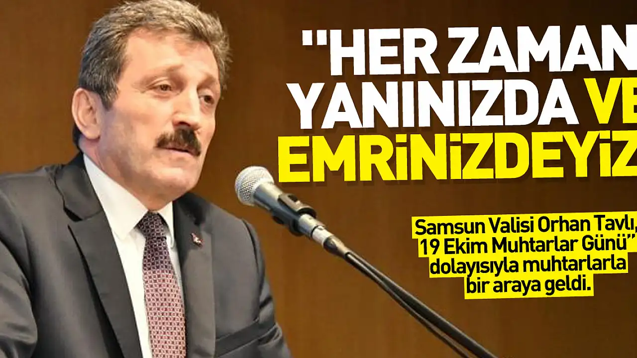 19 Ekim Muhtarlar Günü dolayısıyla muhtarlarla buluşan Vali Orhan Tavlı, Büyükşehir Belediye Başkanı Mustafa Demir, İl Emniyet Müdürü Ahmet Arıbaş ve protokol üyeleri ile muhtarların katılımıyla program düzenlendi. Samsun'da göreve başladığı günden itibaren eğitimden sağlığa, kültürden turizme, enerjiden ulaşıma, Gençlik ve Spor İl Müdürlüğü'nün yatırımlarından Tarım ve Orman İl Müdürlüğü'nün yatırımlarına, tüm ilçelerdeki altyapıdan üstyapıya kadar her noktada büyük yatırımlara imza atıldığını gördüğünü ve gurur duyduğunu ifade eden Vali Tavlı, Türkiye Yüzyılı’na Cumhuriyet'in kurucusu Gazi Mustafa Kemal Atatürk'ün şehri ve mazlum milletlerin sesi olan Türkiye Cumhuriyeti Devleti’nin temellerinin atıldığı Samsun'da, Samsunlular ile birlikte girmenin onurunu ve gururunu yaşadığını belirtti.