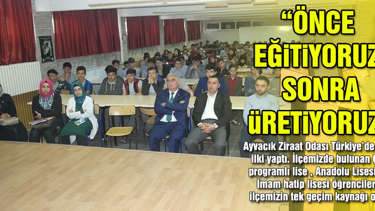 Ayvacık Ziraat Odası Türkiye'de bir ilki yaptı. İlçemizde bulunan Çok programlı lise , Anadolu Lisesi ve İmam hatip lisesi öğrencilerine ilçemizin tek geçim kaynağı olan fındık tarımı hakkında eğitim düzenlendi