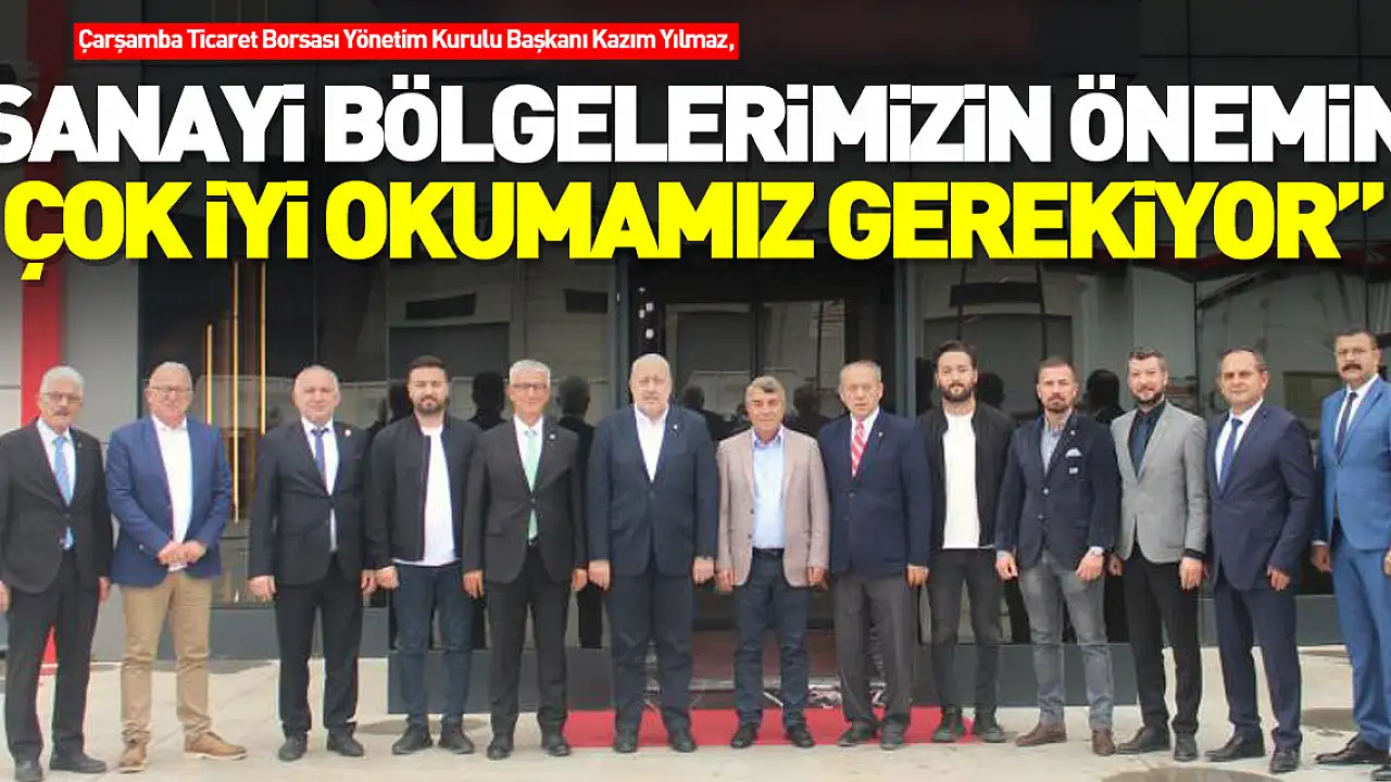 Çarşamba Ticaret Borsası Yönetim Kurulu Başkanı Yılmaz, Çarşamba'da sanayinin, tarımın ve istihdamın gelişmesi için oluşturulan sanayi bölgelerinin önemini çok iyi okumaları gerektiğini söyledi.