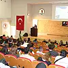 Söyleşiye Bafra Kaymakamı Cevdet Ertürkmen, Belediye Başkan Yardımcısı Ahmet Tokgöz ile kurum amirleri ile öğrenciler katıldı.