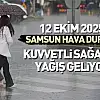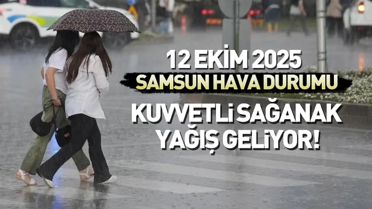 Meteoroloji 10. Bölge Müdürlüğü verilerine göre, 12 Ekim 2025 Pazar günü Samsun ve ilçelerinde kuvvetli sağanak yağış etkili olacak. Hafta sonu planı olan vatandaşların dikkatli olması uyarısı yapıldı.
