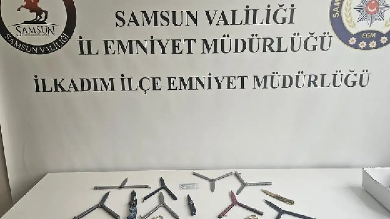 İlkadım ilçesinde üzerinde çok sayıda bıçak ve muşta bulunduran kişi gözaltına alındı. Kent merkezinde uygulama gerçekleştiren polis ekipleri, durumundan şüphelendikleri A.K.Y'yi durdurdu. Ekipler, şüphelinin üst aramasında 13 bıçak ile 1 muşta ele geçirdi. Zanlı A.K.Y. gözaltına alınırken, bıçaklar ve muştaya el konuldu.