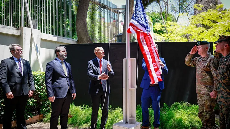 Suriye'nin başkenti Şam'da 2012'de faaliyetleri durdurulan ABD Büyükelçiliği konutunda ABD bayrağı yeniden göndere çekildi.