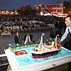 Daha sonra 10. Yıl Marşı eşliğinde üzerinde, Atatürk'ün "19 Mayıs 1919 İşte Benim Doğum Günüm" sözlerinin yazılı olduğu, Bandırma Vapuru figürü ile Türk Bayrağı ve Atatürk fotoğrafı bulunan pasta kesildi. Palmiyelerle süslü 500 kişilik pastanın 150 kilogram ağırlığında, 1.70 metre uzunluğunda, 1.30 metre eninde, çikolata ve meyveli olduğu ifade edildi. Pasta, Sosyal Hizmetler ve Çocuk Esirgeme Kurumu'na götürülmek üzere alınırken, ardından havai fişek gösterisi gerçekleştirildi.
