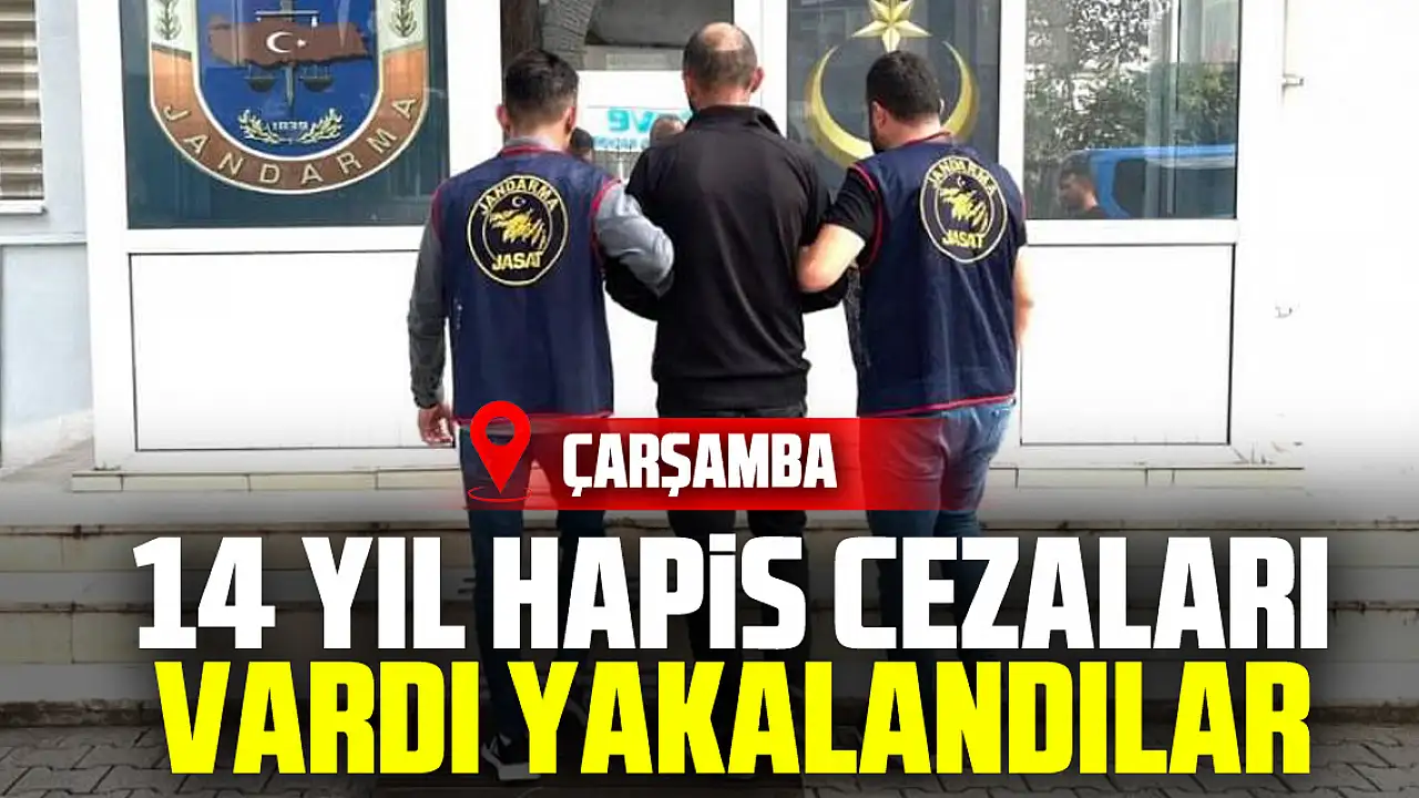 Samsun'un Çarşamba ve Salıpazarı ilçelerinde 14'er yıl hapis cezası bulunan 2 kişi, jandarmanın takibi sonucu yakalandı.
