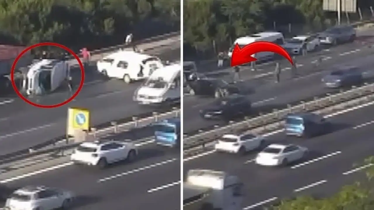 Araçlardan birinin yan yattığı görülürken itfaiye ve polis ekipleri çevrede güvenlik önlemi alarak başka bir olayın yaşanmaması için uğraştı. Kazadan geriye ise bu görüntüler kaldı.