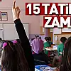 Milli Eğitim Bakanlığı tarafından açıklanan takvime göre 15 tatil (yarıyıl tatili) 19-30 Ocak tarihleri arasında yapılacak. Bu tarihlerde öğrenciler tatile çıkarak ikinci dönem öncesi dinlenme fırsatı elde edecek.