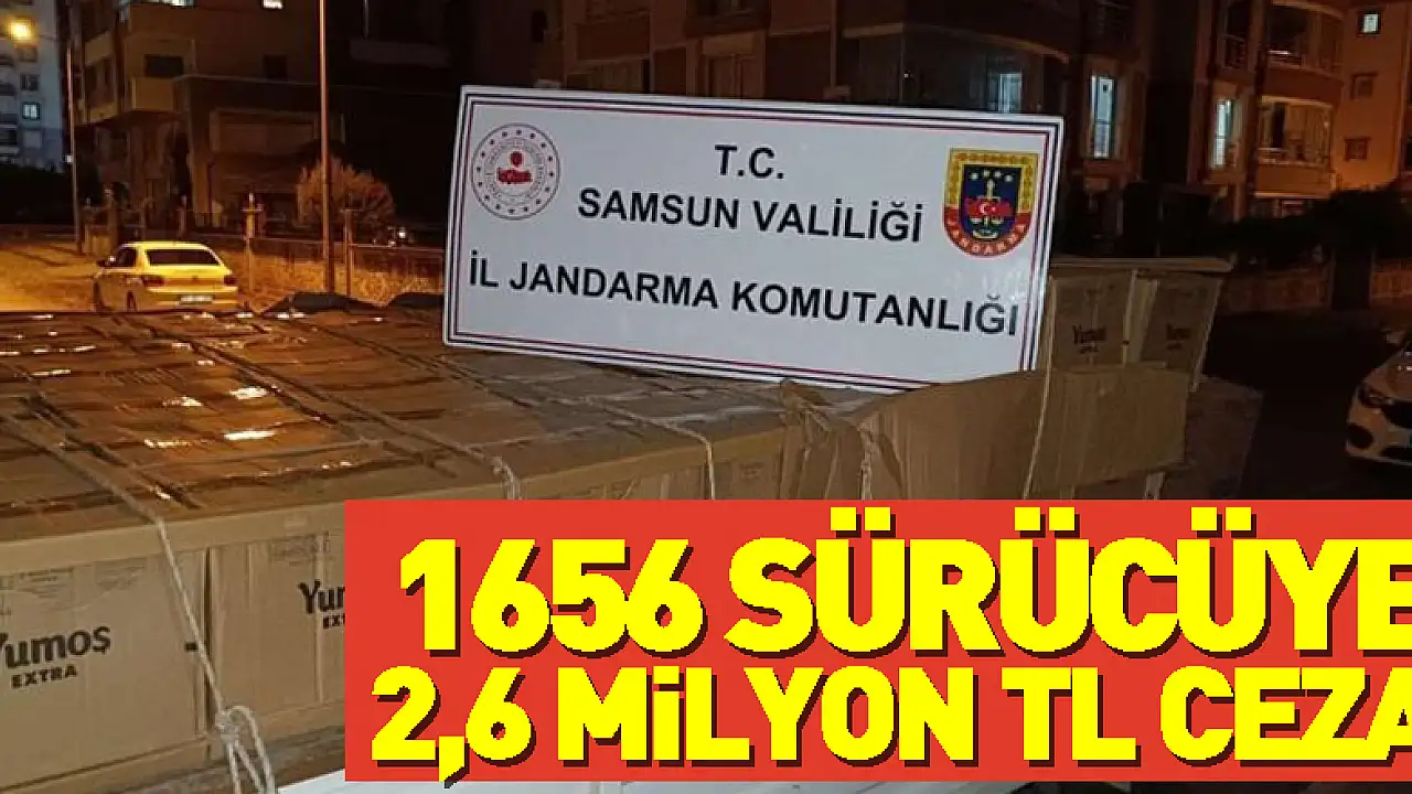 Samsun'da İl Jandarma Komutanlığı'na bağlı trafik ekipleri 1656 araç ve sürücüsüne çeşitli kural ihlallerinden 2 milyon 578 bin 574 TL cezai işlem uyguladı.