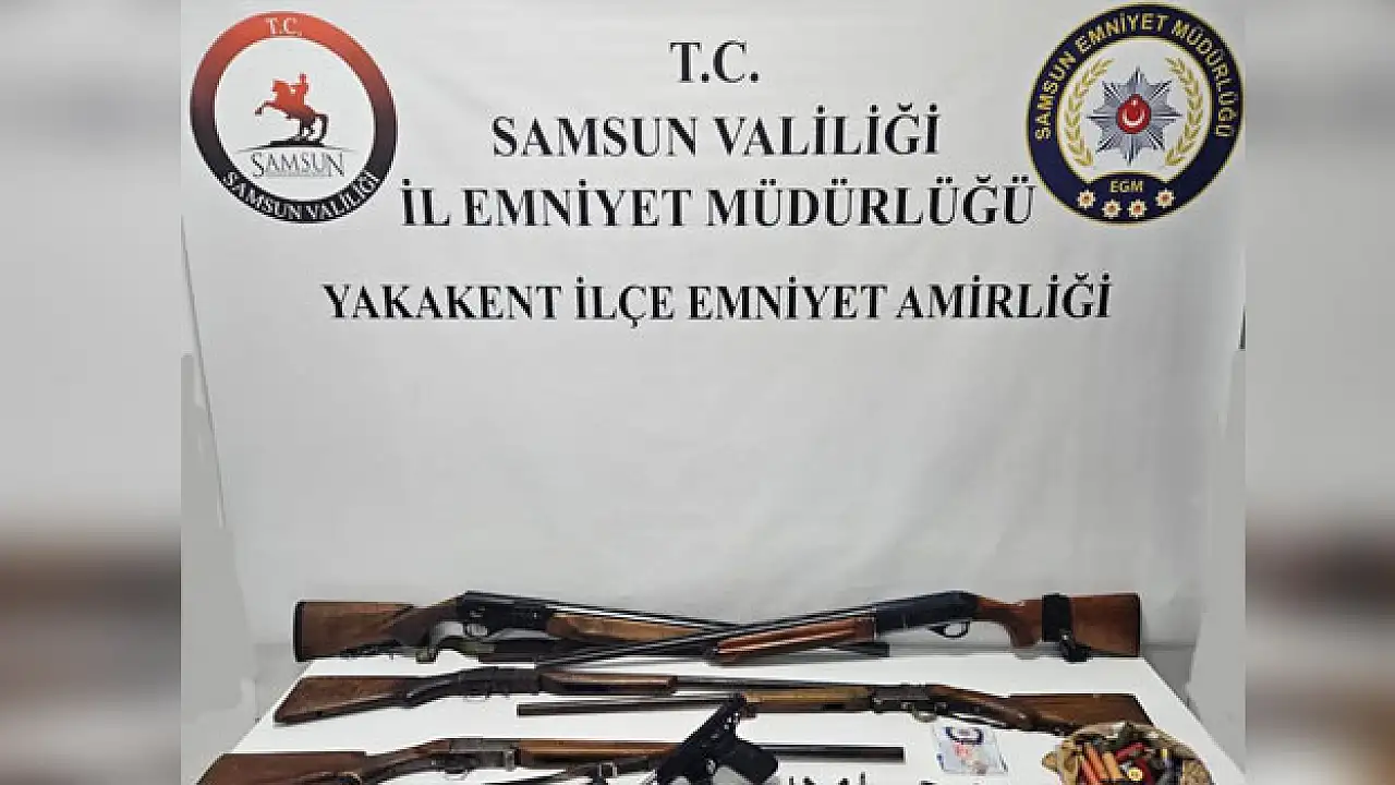 Edinilen bilgiye göre, Samsun'un Yakakent ilçesinde Yakakent İlçe Emniyet Amirliği ekiplerince Karaaba Mahalesi Kozköy Mahallesi'nde düzenlenen operasyonda, A.K. (30) ve B.A. (47) isimli şahısların ikametlerinde arama yapıldı. Yapılan aramada 5 adet ruhsatsız tüfek, 60 adet kartuş, 1 adet ruhsatsız tabanca, 412 adet tabanca mermisi, 3 adet 7.62 mm çapında fişek ve 1.4 gram esrar ele geçirildi. Olayla ilgili A.K. ve B.A. gözaltına alındı. Soruşturma devam ediyor.