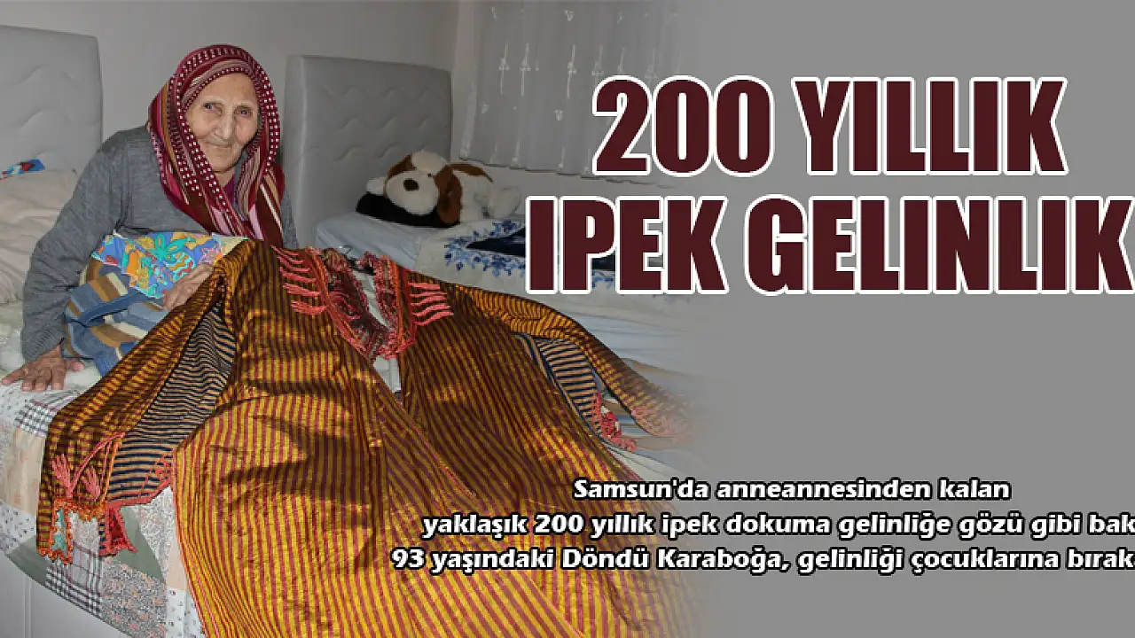 Samsun'da anneannesinden kalan yaklaşık 200 yıllık ipek dokuma gelinliğe gözü gibi bakan 93 yaşındaki Döndü Karaboğa, gelinliği çocuklarına bırakacak