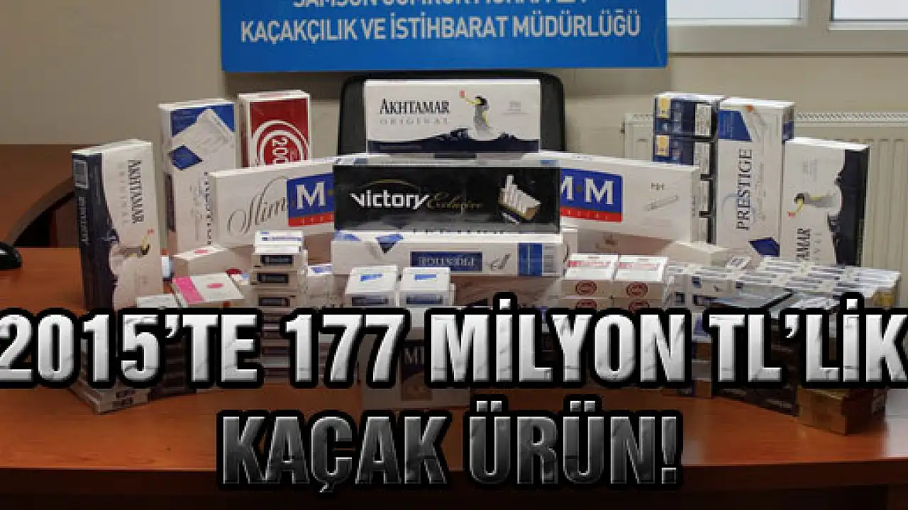 Samsun Gümrük Muhafaza Kaçakçılık ve İstihbarat Müdürlüğü ekipleri Samsun Limanı ve havaalanında 2015 yılı içerisinde yaptıkları çalışmalar kapsamında toplam 177 milyon 507 bin 833 TL 51 kuruş değerinde kaçak ürün elde etti. Buna göre, 33 bin 734 TL 59 kuruş değerinde 4 bin 871 adet sigara paketi, 14 bin 63 TL 25 kuruş değerinde 16 adet cep telefonu, 616 bin 571 TL 21 kuruş değerinde 61 ton 290 kilo iç ceviz, 10 bin 426 TL 25 kuruş değerinde muhtelif eşya, 23 bin 219 TL 90 kuruş değerinde Gürcistan plakalı 1 adet araç, 42 kilo 20 gram uyuşturucu, 7 adet alkol, 176 milyon 772 bin 582 TL 50 kuruş değerinde motorin, 24 bin 84 TL değerinde 223 adet tıbbi malzeme ve 13 bin 151 TL 81 kuruş değerinde 4 adet Glock marka 100’lük şarjör ele geçirildiği bildirildi.