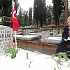 Bedriye Hamlı, Samsun Asri Mezarlık Şehitliği’nde oğlu Şehit Astsubay İlhan Hamlı’nın ruhuna Kur’an okuyup dua ettikten buradan ayrıldı.