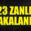 Operasyonda, "uyuşturucu ticareti yapmak" suçundan 16 yıl 1 ay 3 gün, "uyuşturucu kullanmak" suçundan 3 yıl 9 ay, "kasten yaralama" suçundan da 1 yıl 9 ay kesinleşmiş hapis cezası bulunanların da olduğu 23 kişi yakalandı.