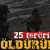 Genelkurmay Başkanlığı, Mardin, Şırnak ve Hakkari'de 25 teröristin etkisiz hale getirildiğini açıkladı. Üç ilde etkisiz hale getirilen terörist sayısının 262'ye ulaştığı bildirildi.