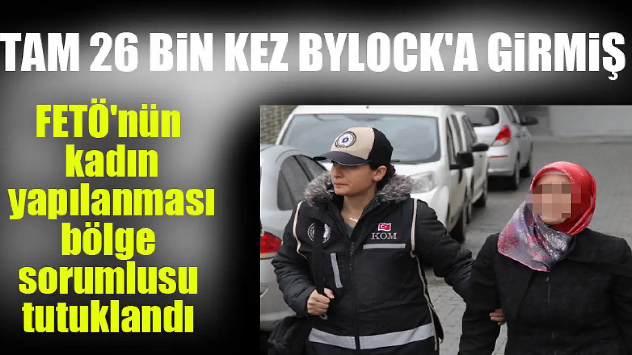 Fetullahçı Terör Örgütü/Paralel Devlet Yapılanması (FETÖ/PDY) soruşturması kapsamında aranan örgütün kadın yapılanması bölge sorumlusu olduğu ileri sürülen ve ByLock'a toplam 26 bin 174 kez giriş yaptığı tespit edilen kadın, çıkarıldığı mahkemece tutukl