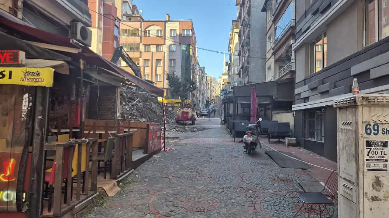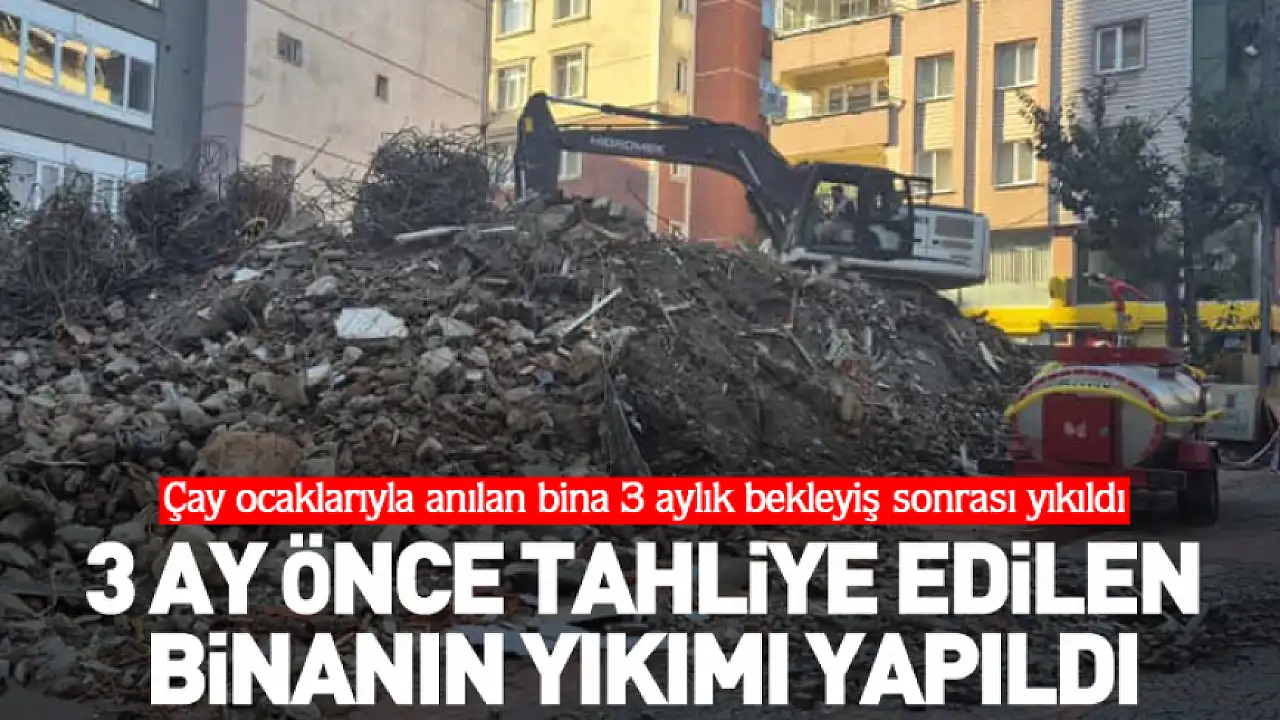 İlkadım ilçesinde halk arasında 'çay ocakları mıntıkası' olarak bilinen alanda boşaltılan bina 3 aylık bekleyişin ardından yıkıldı.