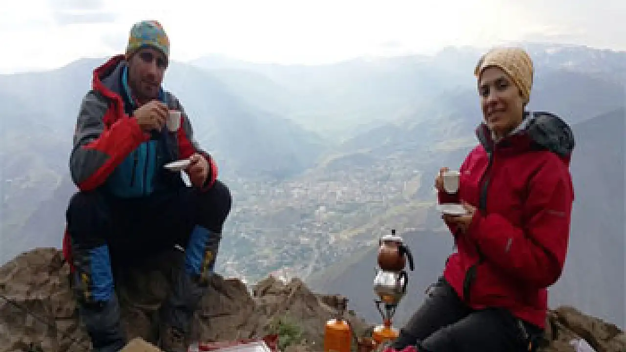 Hakkari'de 6 dağcı, tırmandıkları 3 bin 487 metre yüksekliğindeki Sümbül Dağı'nın zirvesinde kahve içip, fal baktı.