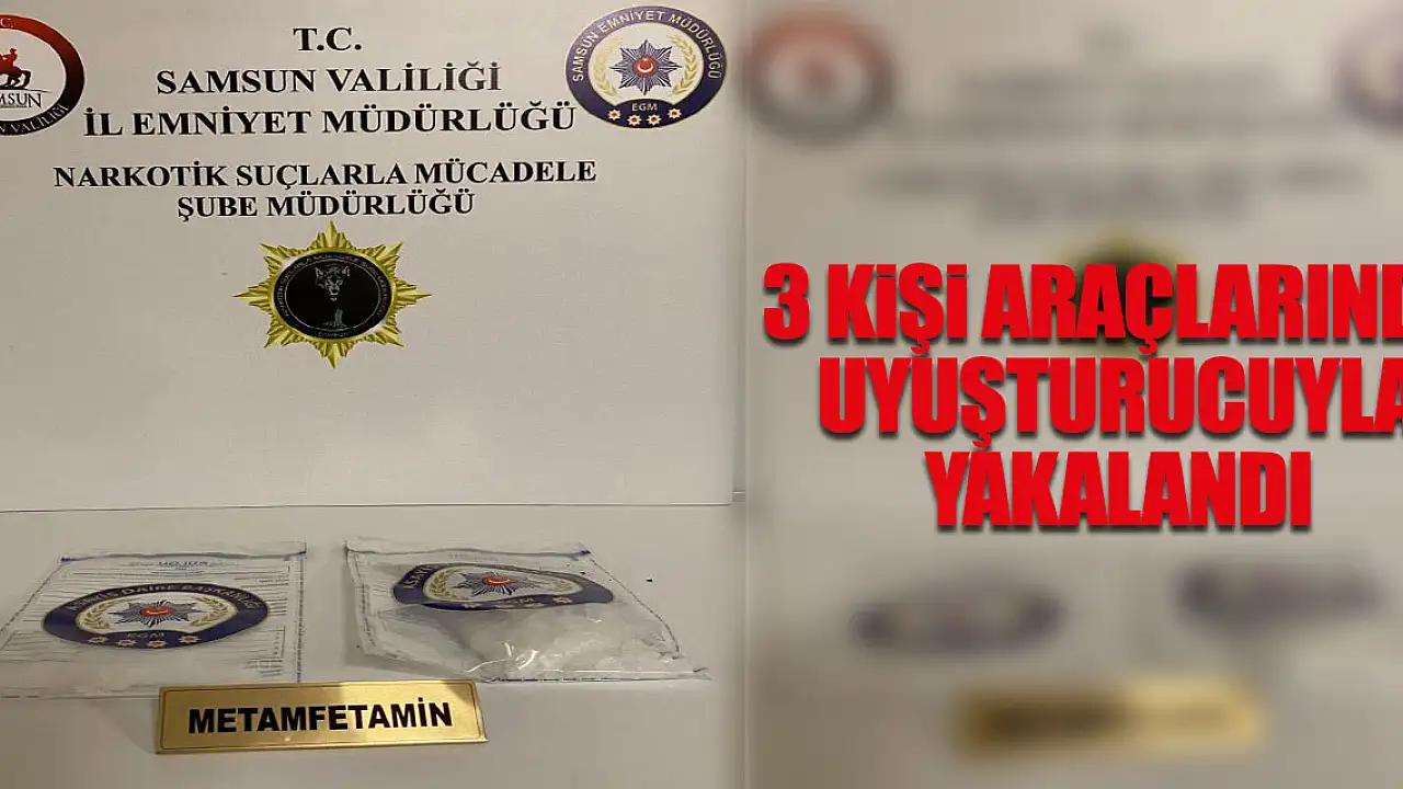 Samsun'da 3 kişi araçlarında uyuşturucuyla yakalandı