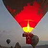 Sıcak hava balon pilotu Ahmet Başyiğit, gazetecilere yaptığı açıklamada, bugünkü uçuşun 30 Ağustos Zafer Bayramı’na özel olduğunu belirtti: