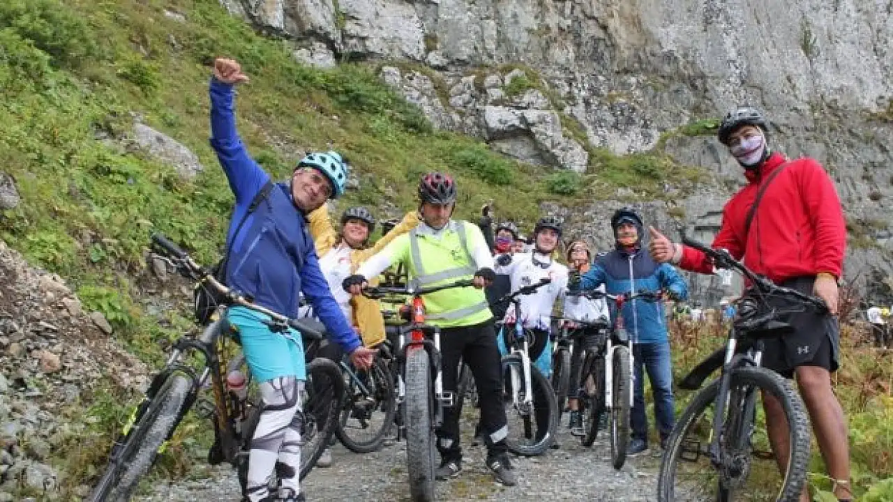 1914 yılında Rus işgali sırasında inşa edilen, dünyanın en tehlikeli yolu olarak bilinen yolda 30 bisiklet tutkunu pedal çevirdi