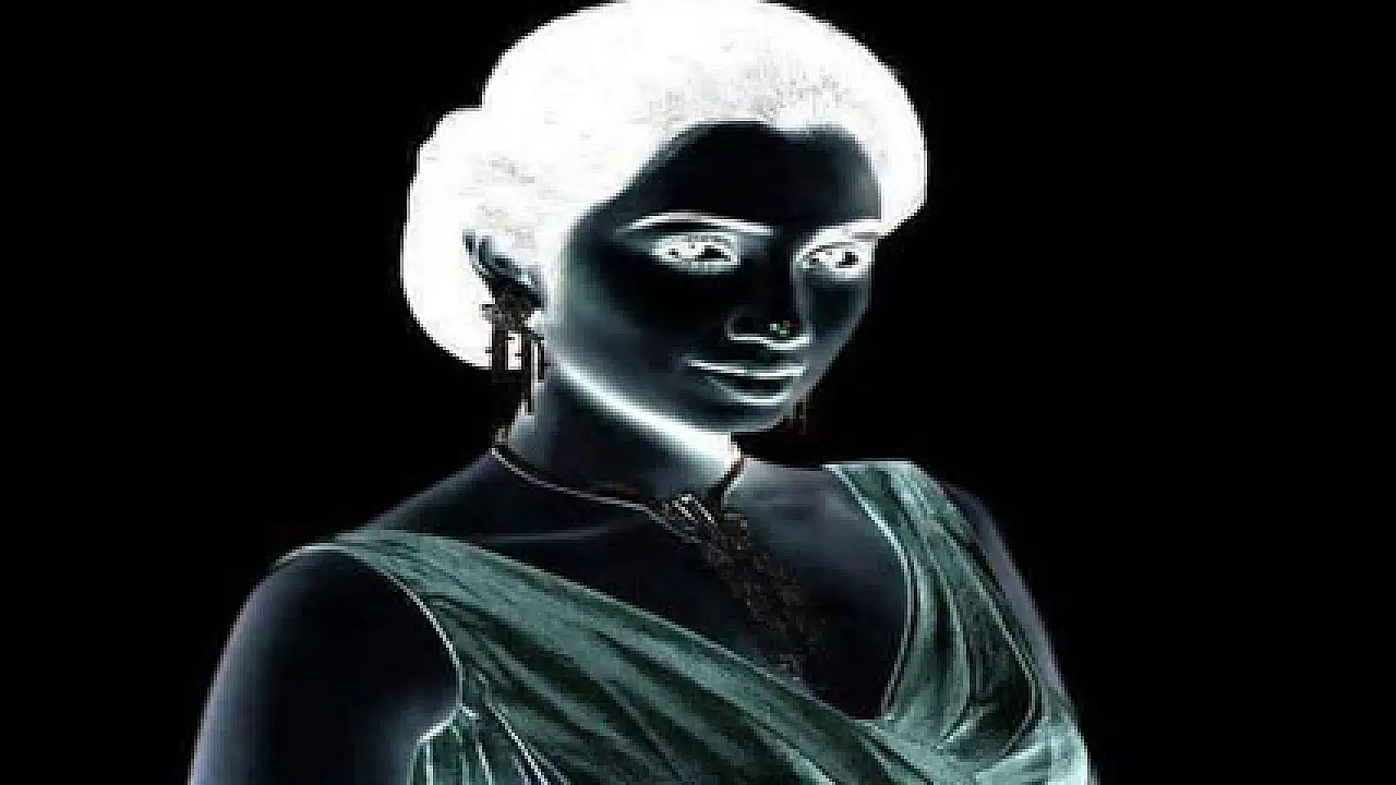 30 saniye boyunca kadının burnundaki kırmızı noktaya odaklanın. Daha sonra tavana bakın. Ne görüyorsunuz? Gözünü kapatıp açın ve tavana bir daha bakın. Yine aynı görüntü. Fotoğraftaki kadın tavanda.