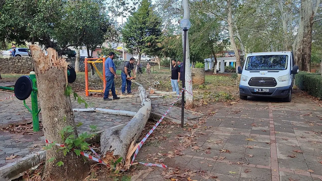 Adana'nın Kozan ilçesinde gece etkili olan fırtına nedeniyle Atatürk Parkı'nda 3 ağaç zarar gördü.