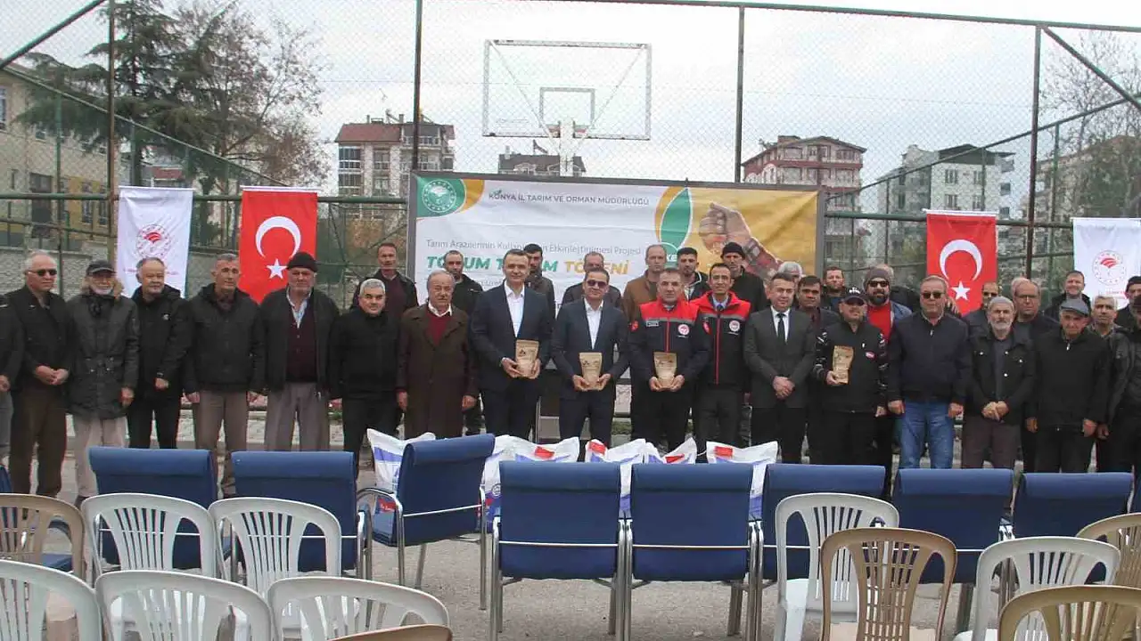 Konya’nın önemli nohut ekilişinin olduğu ilçelerinden Beyşehir’de Konya İl Tarım ve Orman Müdürlüğü tarafından düzenlenen sertifikalı tohumun çiftçilere dağıtım töreninde konuşan İl Tarım ve Orman Müdürü Duran Seçen, Bitkisel Üretimi Genel Müdürlüğü tarafından yürütülen Tarım Arazilerinin Kullanımının Etkinleştirilmesi (TAKE) Projesi kapsamında yürüttükleri çalışmalarla Tarım ve Orman Bakanlığının ekilmeyen bir karış toprak kalmamasını hedeflediğini söyledi.