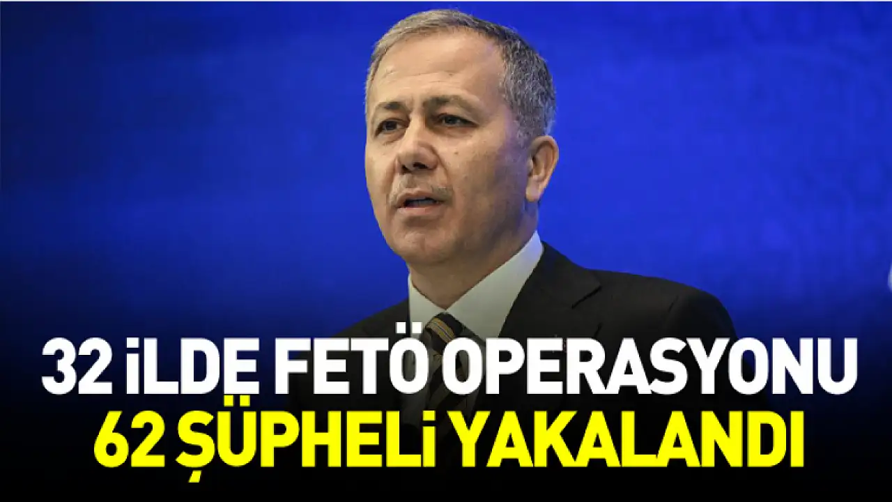İçişleri Bakanı Ali Yerlikaya, sosyal medya hesabından yaptığı açıklamada, FETÖ'ye yönelik son iki haftada 32 ilde düzenlenen operasyonlarda 62 şüphelinin yakalandığını duyurdu.