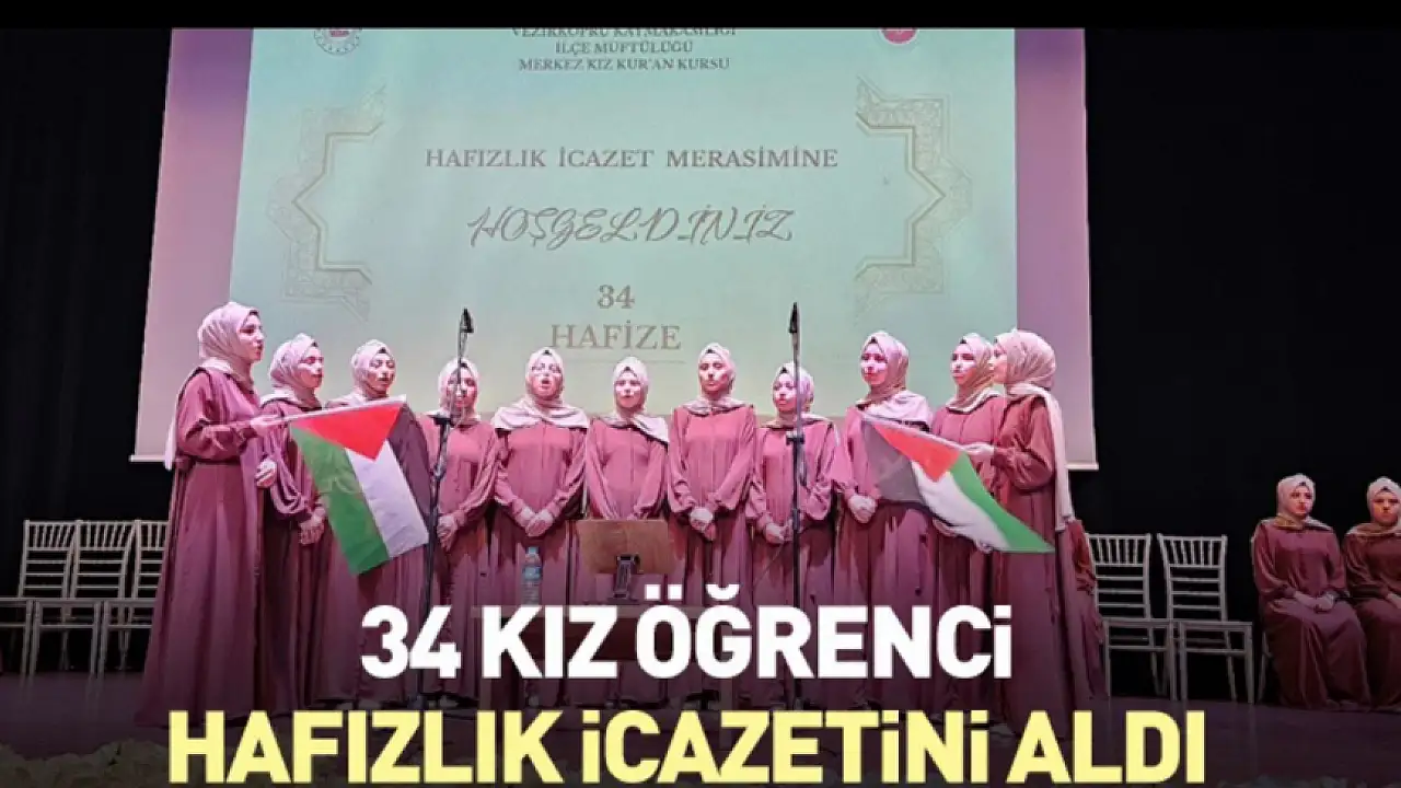 Samsun'un Vezirköprü ilçesinde, İlçe Müftülüğü'ne bağlı Merkez Kız Kur'an Kursu'nda hafızlık eğitimini tamamlayan 34 kız öğrenci için 'Hafızlık İcazet Merasimi' düzenlendi.