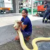 Tayland'ın başkenti Bangkok'ta bir sokakta yaklaşık 4 metrelik albino pitonu bulundu. Evcil olduğu öğrenilen piton sahibine teslim edildi