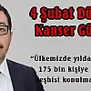 4 Şubat Dünya Kanser Günü dolayısıyla açıklama yapan Samsun İl Sağlık Müdürü Dr. Yusuf Köksal, Türkiye'de yılda yaklaşık 175 bin kişiye kanser teşhisi konulduğunu söyledi. Müdür Dr. Köksal, "Kanser, dünyada ve ülkemizde sebebi bilinen ölümler sıralamasında kalp ve damar hastalıklardan sonra ikinci sırada gelen önemli bir toplum sağlığı problemidir. Bu çerçevede kanserden korunmak büyük önem taşımaktadır. Ülkemizde yılda yaklaşık 175 bin kişiye kanser teşhisi konulmaktadır. Kanserli olguların yaklaşık üçte ikisi erkeklerde görülmekte, bölge veya şehirlerimiz arasında kanser görülme sıklığı açısından önemli farklılıklar bulunmamaktadır. Bununla birlikte, ülkemizdeki kanser vakalarının önemli bir kısmı sigara ve obeziteyle ilişkilidir. Kanser korunulabilir bir hastalıktır ve doğru korunma stratejileri ile kanser vakalarının üçte biri önlenebilmektedir. Çevresel etkenler kanser oluşumunda yüzde 90-95 oranında etkilidir" şeklinde konuştu.