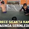 Yenişehir ilçesine bağlı Sarıbey Mahallesi’nde, sıcak havalardan bunalan bir vatandaş zekasını konuşturarak çocuklar için ilginç bir çözüm geliştirdi. Sahibi olduğu kamyonun kasasını naylonla kaplayan vatandaş, kasaya su doldurarak mahalle çocuklarına adeta mobil bir yüzme havuzu sundu.