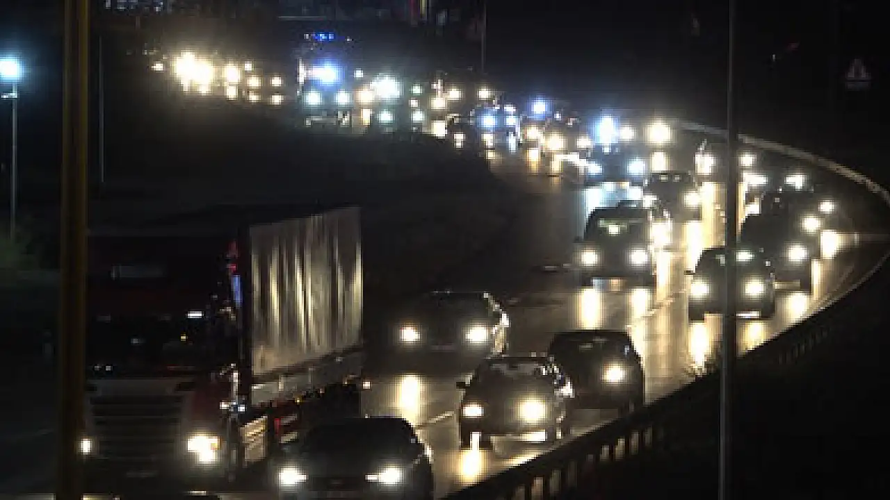 Kırıkkale’deki ’kilit kavşak’ta trafik yoğunluğuna neden oldu. Gece yarısı devam eden trafik yoğunluğu havadan görüntülendi.