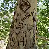 Kızlarsekisi yolu üzerindeki Çatalçeşme mevkiinde bulunan çınarın gövdesi ve dalları bıçakla kazınarak yazı tahtasına çevrildi.