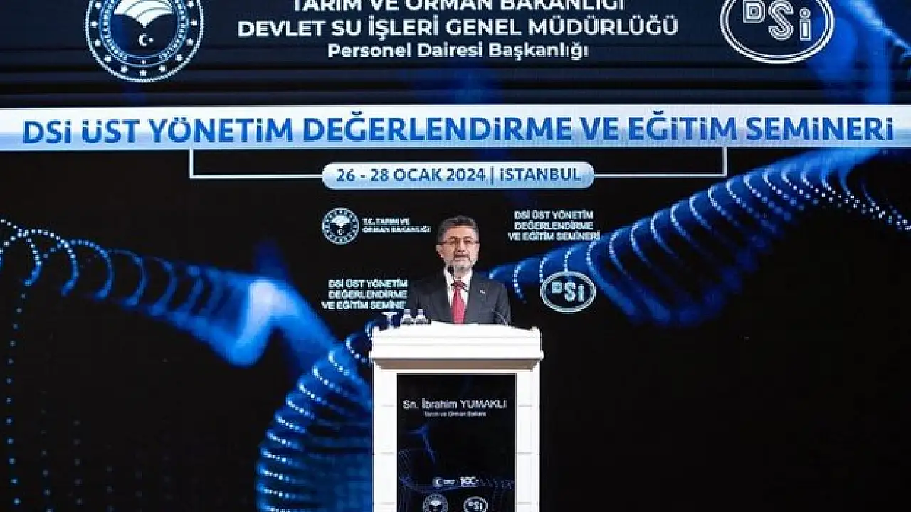 Bakan Yumaklı, Devlet Su İşleri (DSİ) Üst Yönetim Değerlendirme ve Eğitim Semineri'nde yaptığı konuşmada, hayatın kaynağı olan suyun hayatın devamlılığı için de bir o kadar önemli olduğunu söyledi. Yumaklı, dünya tarihine bakıldığında bütün medeniyetlerin su kaynaklarının hemen yanında kurulduğuna işaret ederek, "Bu anlamda, suya sahip olmak, hem ülkeler hem de milletler için stratejik öneme sahip. Biz de ülke olarak ekonomik kalkınmamızın en önemli unsuru olan suyu stratejik alan olarak ele alıyor ve stratejik olarak yönetiyoruz." ifadesini kullandı. Türkiye'nin ekonomisinin üçlü sacayağı olan tarım, sanayi ve enerji sektörlerinin sürdürülebilirliği için suya ihtiyaç olduğunu vurgulayan Yumaklı, "Bu ihtiyaç her geçen gün artıyor. İşte bu ihtiyacı tecrübe ve bilgi birikimiyle yöneten kurumumuz DSİ'dir. Yaptığı projeler ve çalışmalarla hem ülkemizde hem de dünyada parmakla gösterilen bir kuruma sahibiz." diye konuştu. Yumaklı, DSİ'nin ülkenin en büyük yatırımcı kurumlarından olduğunu belirterek, "Bu sayede ülke topraklarımızın her köşesine yatırımlar götürüyor, Bakanlığımızın hizmet bayrağını dikiyoruz. DSİ, bugüne kadar sulama, enerji, içme suyu, toplulaştırma ve taşkın koruma amaçlı binlerce projeyi hayata geçirdi." dedi.
