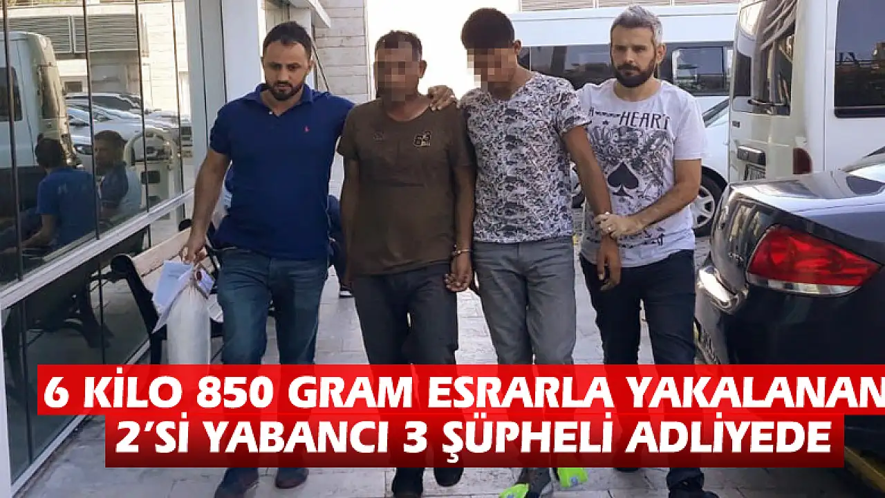 6 kilo 850 gram esrarla yakalanan 2'si yabancı 3 şüpheli adliyede
