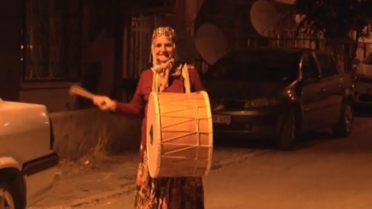 İzmir'de üç senedir Ramazan davulculuğu yapan 62 yaşındaki Ayşe Kikbat, bu yıl da tokmağı eline aldı ve Konak ilçesi Aziziye Mahallesi sakinlerini davulunun sesiyle sahura kaldırdı.