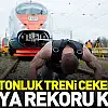 Rus atlet Denis Vovk, 650 ton ağırlığındaki treni 37 saniye içinde 1.48 metre çekerek dünya rekoru kırdı.