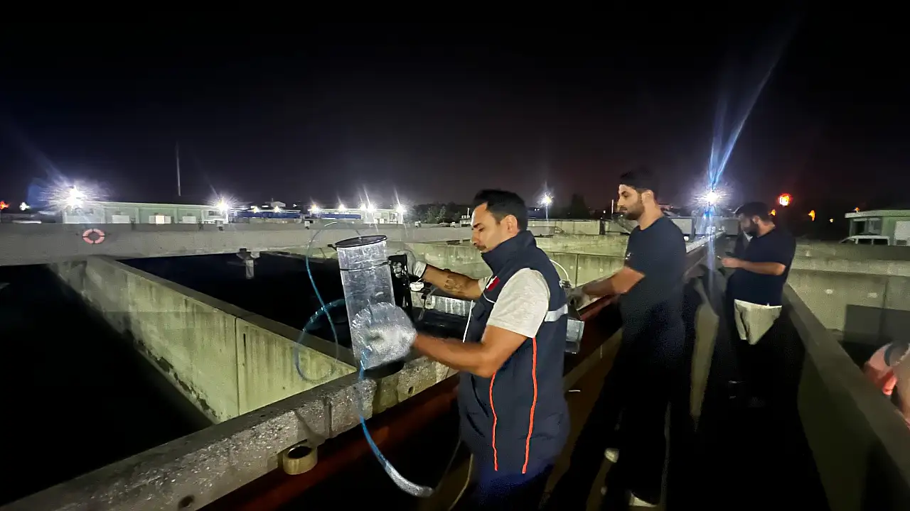 Ekipler, ayrıca Organize Sanayi Bölgesi Atıksu Arıtma Tesisi'nden kaynaklanan kötü koku emisyonunun belirlenmesi amacıyla tesisteki havuzlardan numuneler aldı. Kokunun niteliğini tespit etmek amacıyla laboratuvar analizleri başlatıldı.