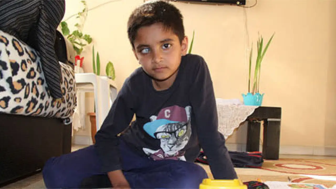 Mersin'de 2,5 yaşındayken sağ gözüne demir çubuk batan ve görme duyusunu kaybeden 7 yaşındaki Kerem Kaya, kornea nakli bekliyor.