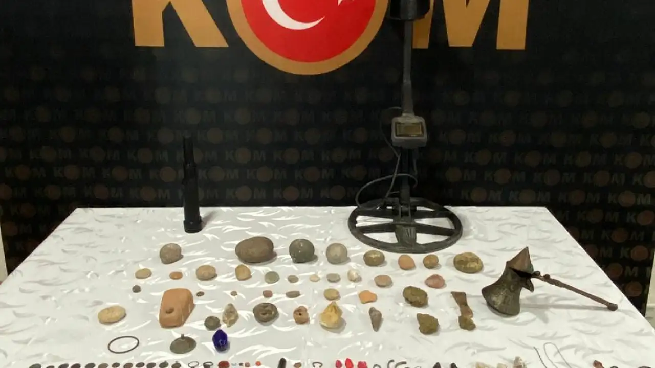 Şüphelilerin evlerine düzenlenen operasyonda Roma, Bizans ve Osmanlı dönemine ait olduğu değerlendirilen 12 sikke ile 71 parça tarihi eser ele geçirildi.