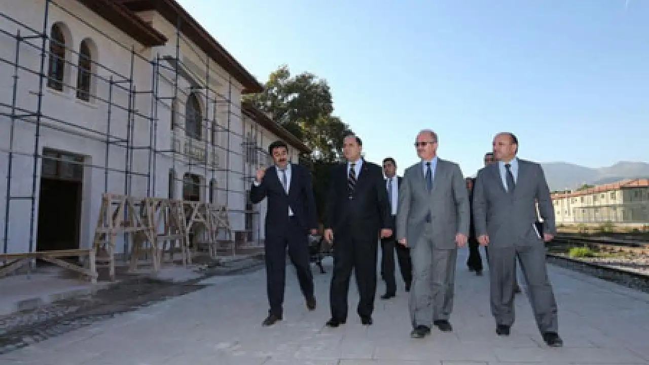Binadaki çalışmaları inceleyen Çomaktekin, 120 gün sürmesi planlanan restorasyon çalışmalarıyla ilgili gar şefi Yalçın Zobu’dan bilgiler aldı.